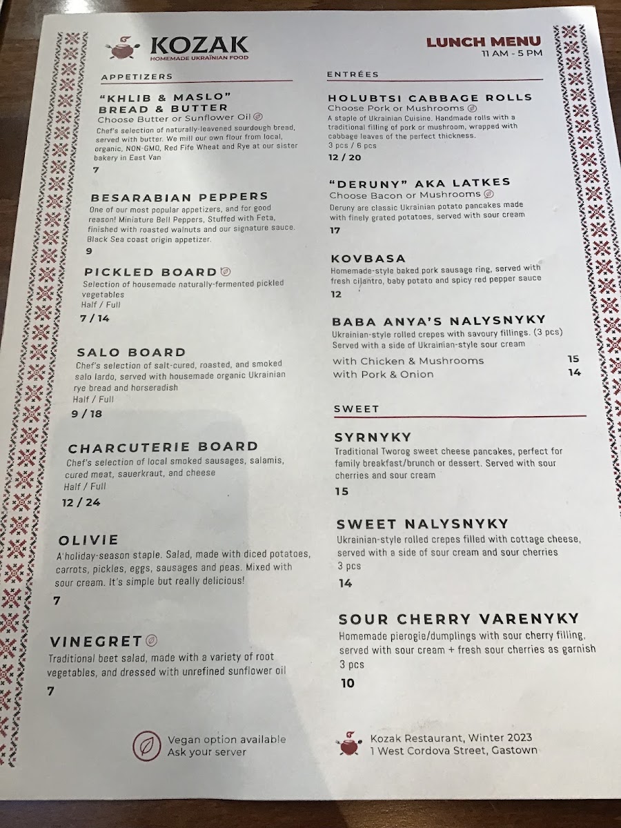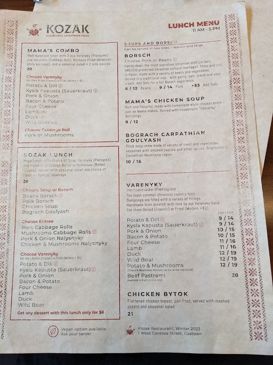 Welcome to Kozak Ukrainian Restaurant, a vibrant culinary gem in downtown Vancouver that invites you to experience the heart of Ukrainian cuisine. Located at 1 W Cordova St, this restaurant blends authenticity with modern flair, offering a delightful array of traditional dishes that will evoke cherished memories.